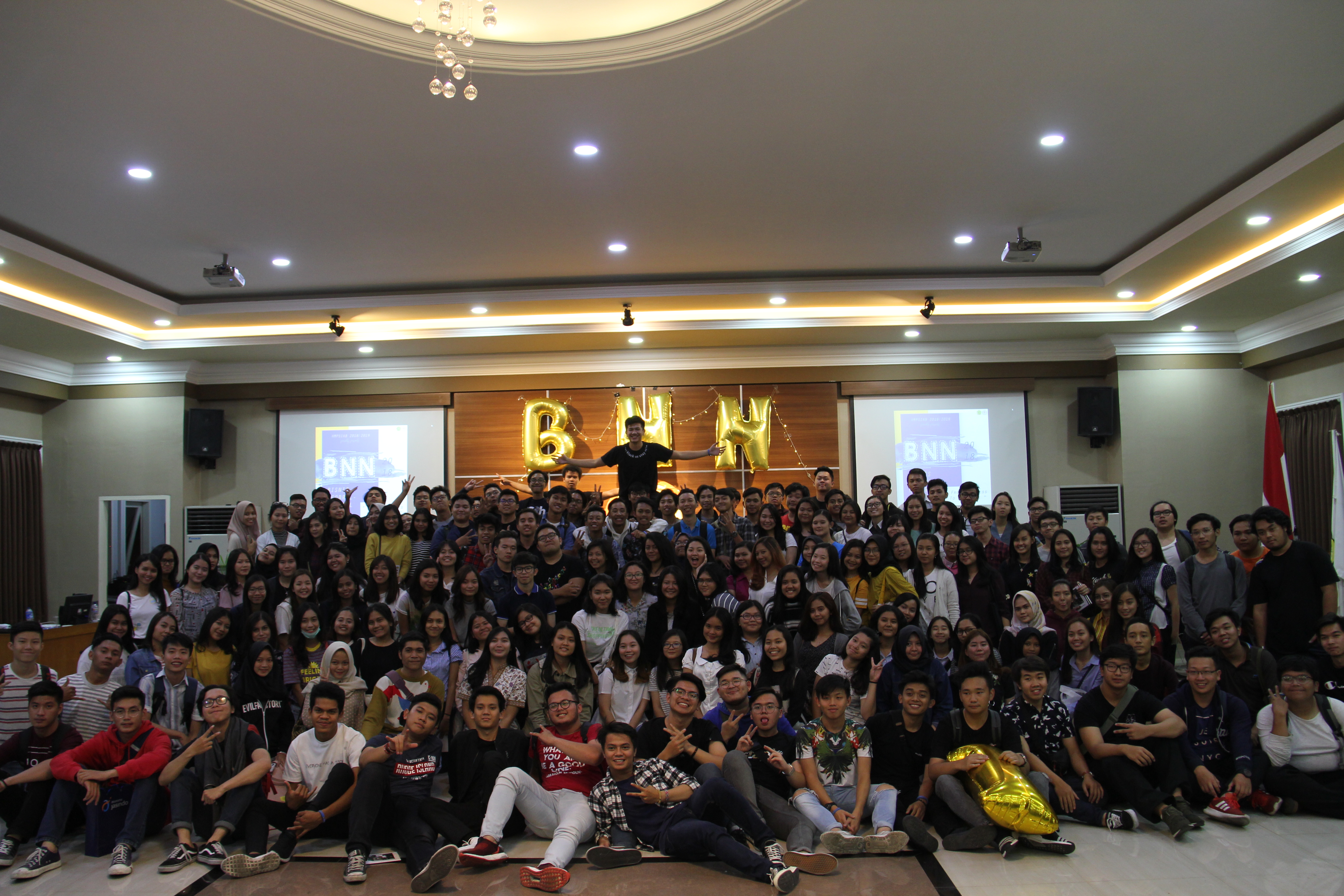Acara BNN sendiri di laksakan dari sore hingga malam hari di ruang veritas room (3501). Disana kita lebih banyak menampilkan beberapa acara seperti Sharing dengan dosen, dan kakak tingkat yang sering mengikuti organisasi baik itu akademik dan non-akademik, sehingga dapat menambah wawasan tentang perkuliahan tidak hanya dari segi akademik tetapi juga non-akademik.