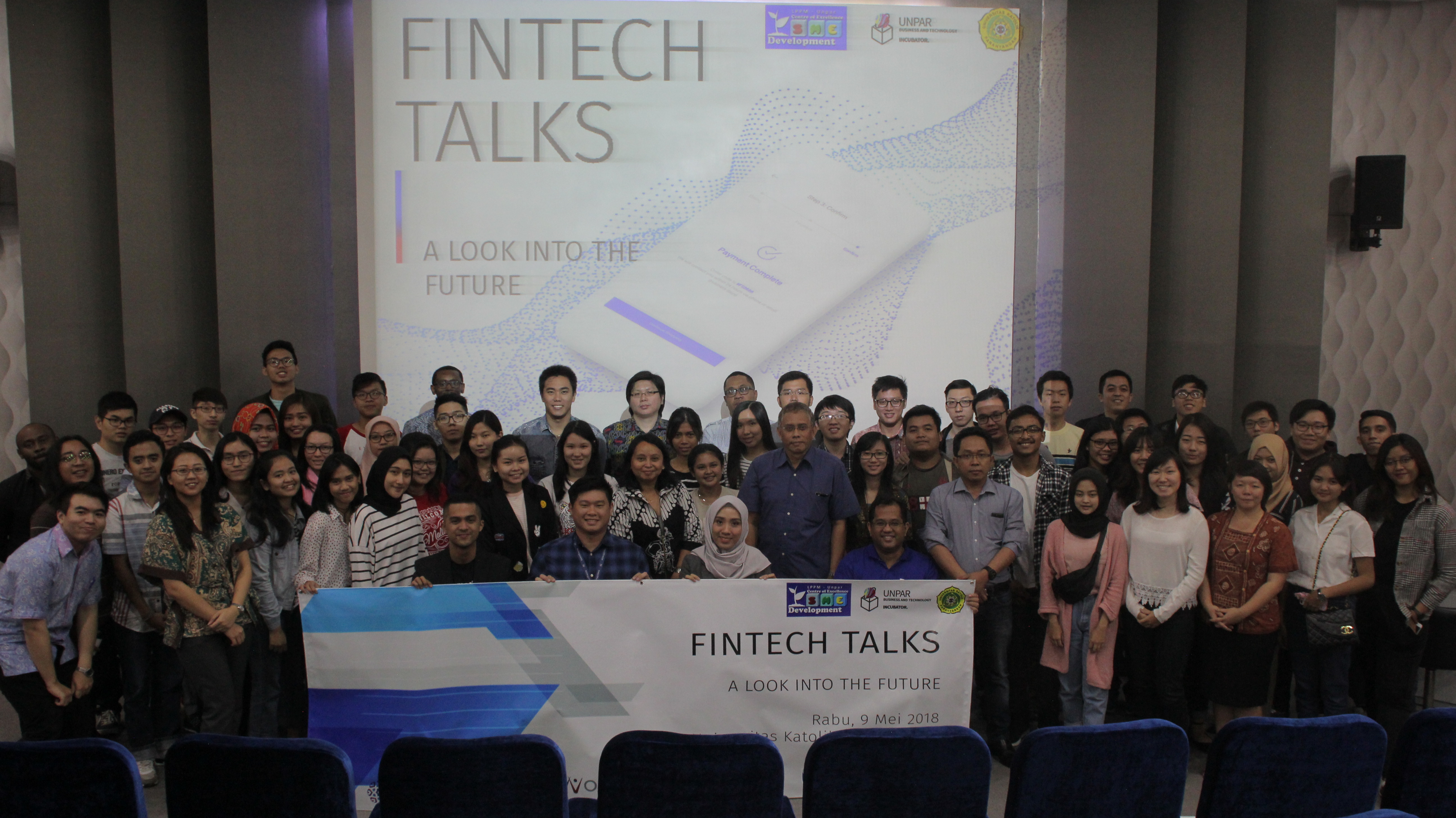 FINTECH TALKS : A Look Into The Future– Fintech Talk : A look Into the future diselengarakan oleh Center of Excellence SME and Development (CoE SMED) bekerja sama dengan Inkubator bisnis dan teknologi, dan diselenggarakan pada Rabu, 9 mei 2018 di Ruang Audio Visual, Gedung FISIP, UNPAR. Acara ini didukung oleh beberapa platform fintech yang sudah cukup ternama di Indonesia yaitu, AMARTHA, KOINWORKS, MODALKU, UANG TEMAN. Acaranya tidak hanya berupa seminar melainkan diadakan juga Expo yang bertempat di Selasar PPAG. Seminar berlangsung dari pukul 8 pagi hingga 12 siang, sedangkan Expo berlangsung lebih lama, yaitu dari pukul 8 pagi hingga jam 4 sore.